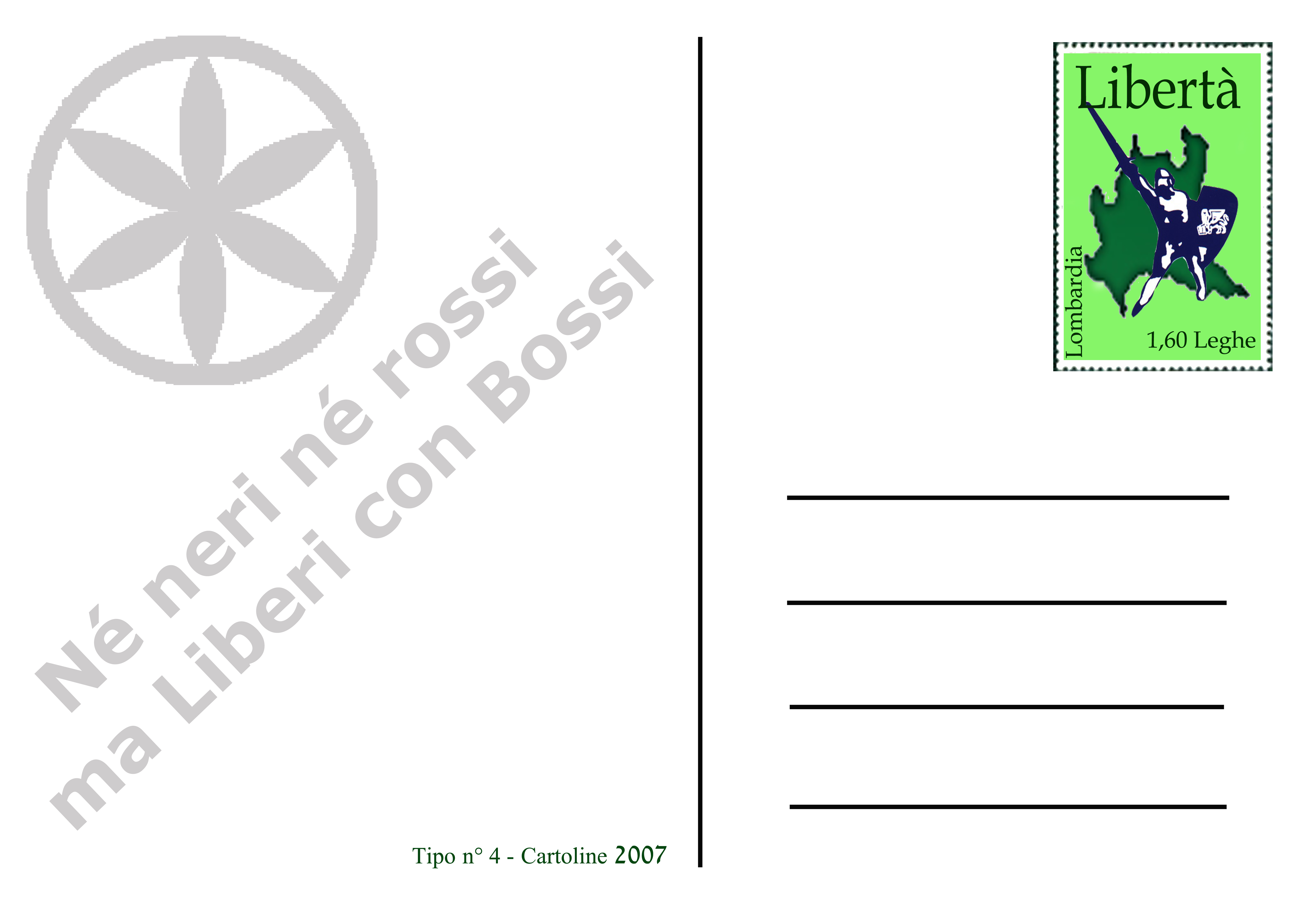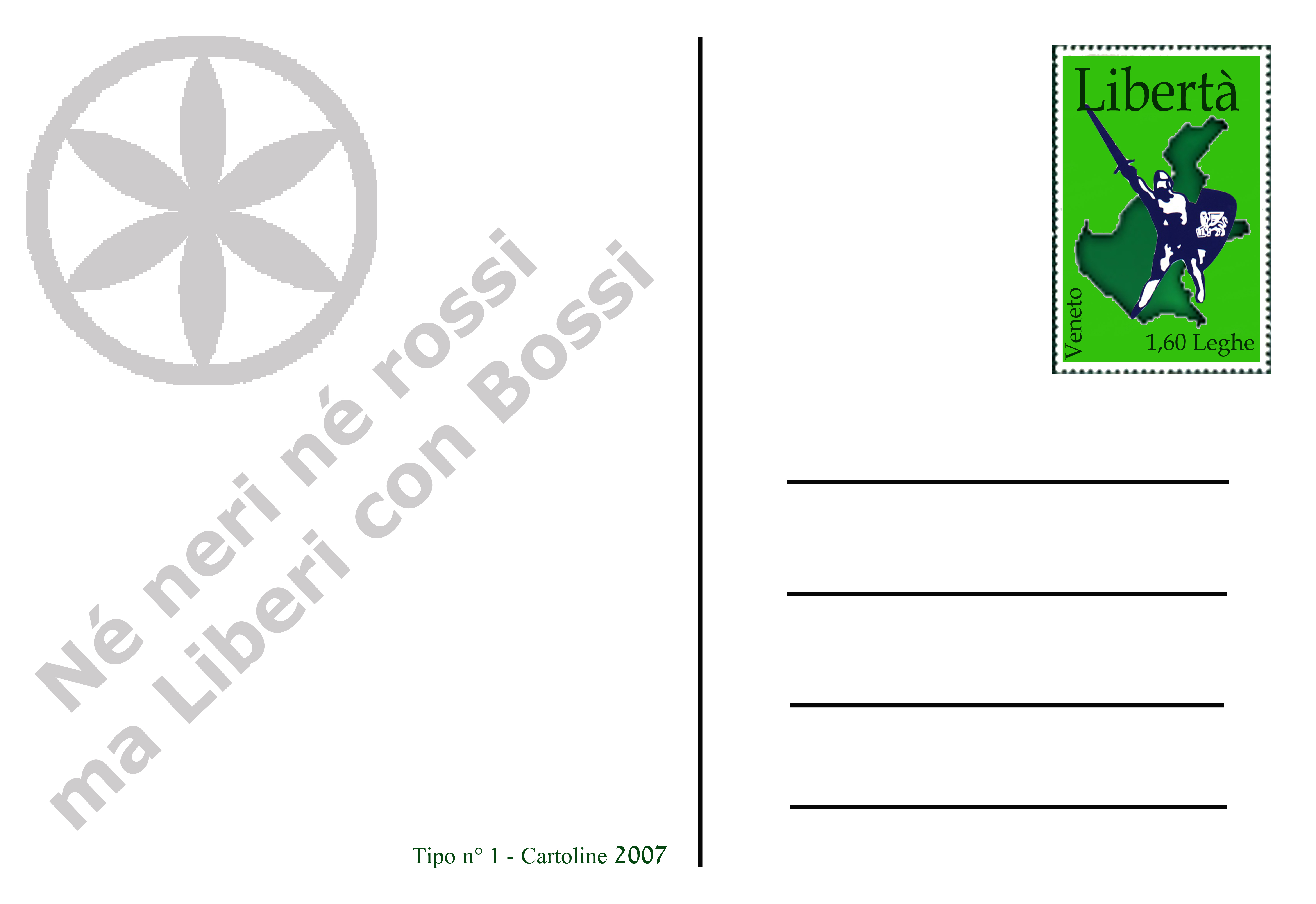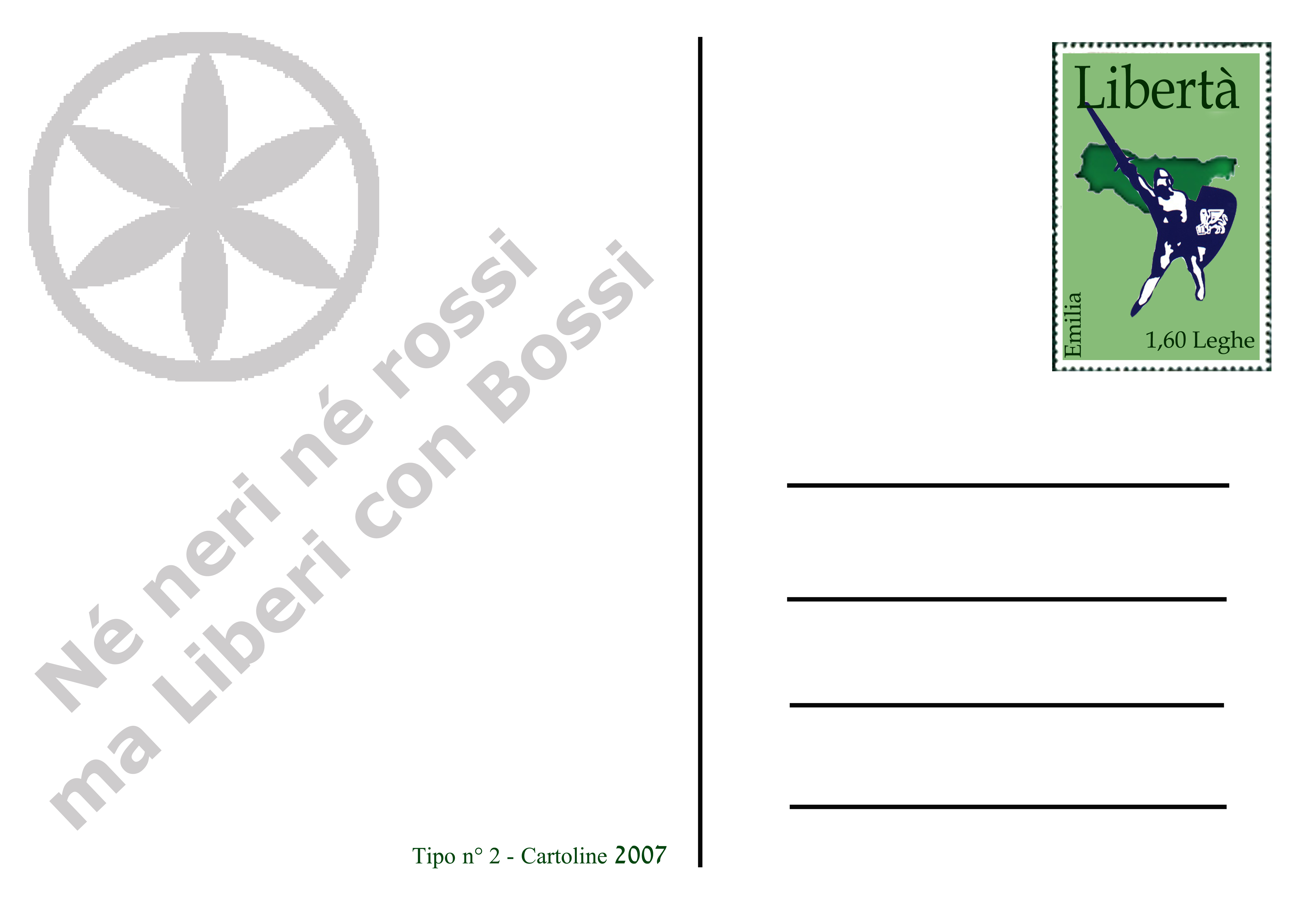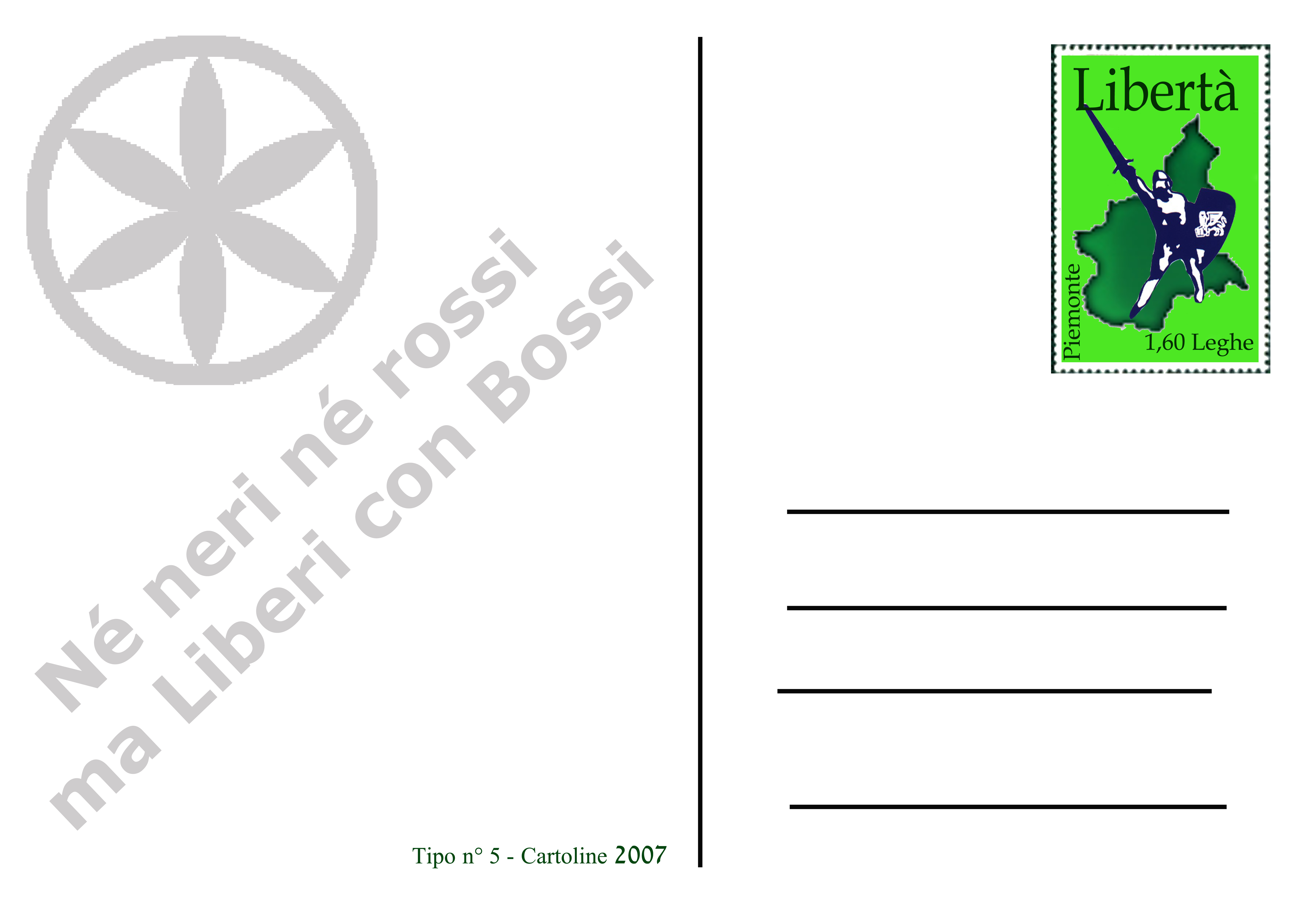 Retro: Bollo della Nazione + scritta “nè neri nè rossi  /  ma liberi con Bossi”