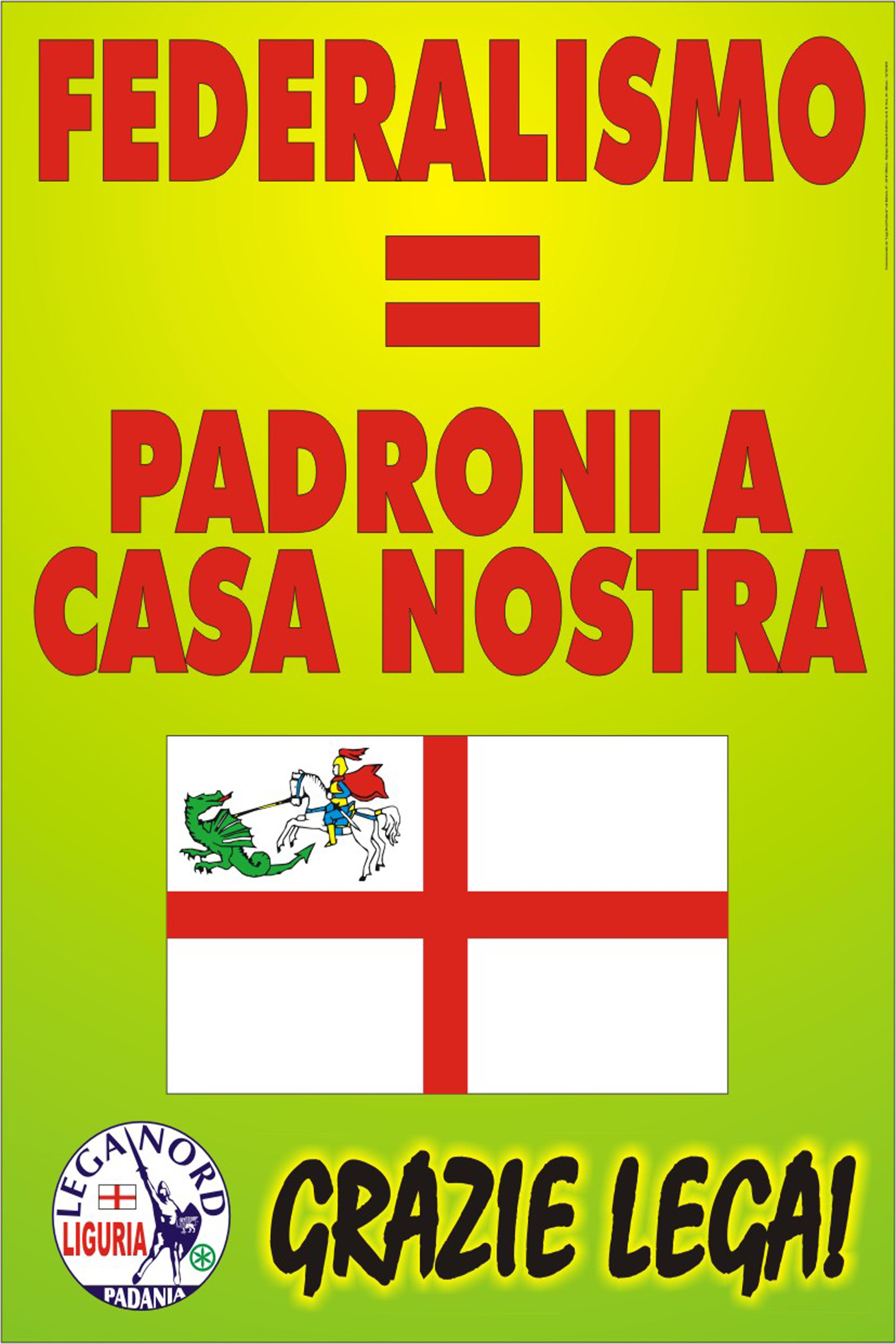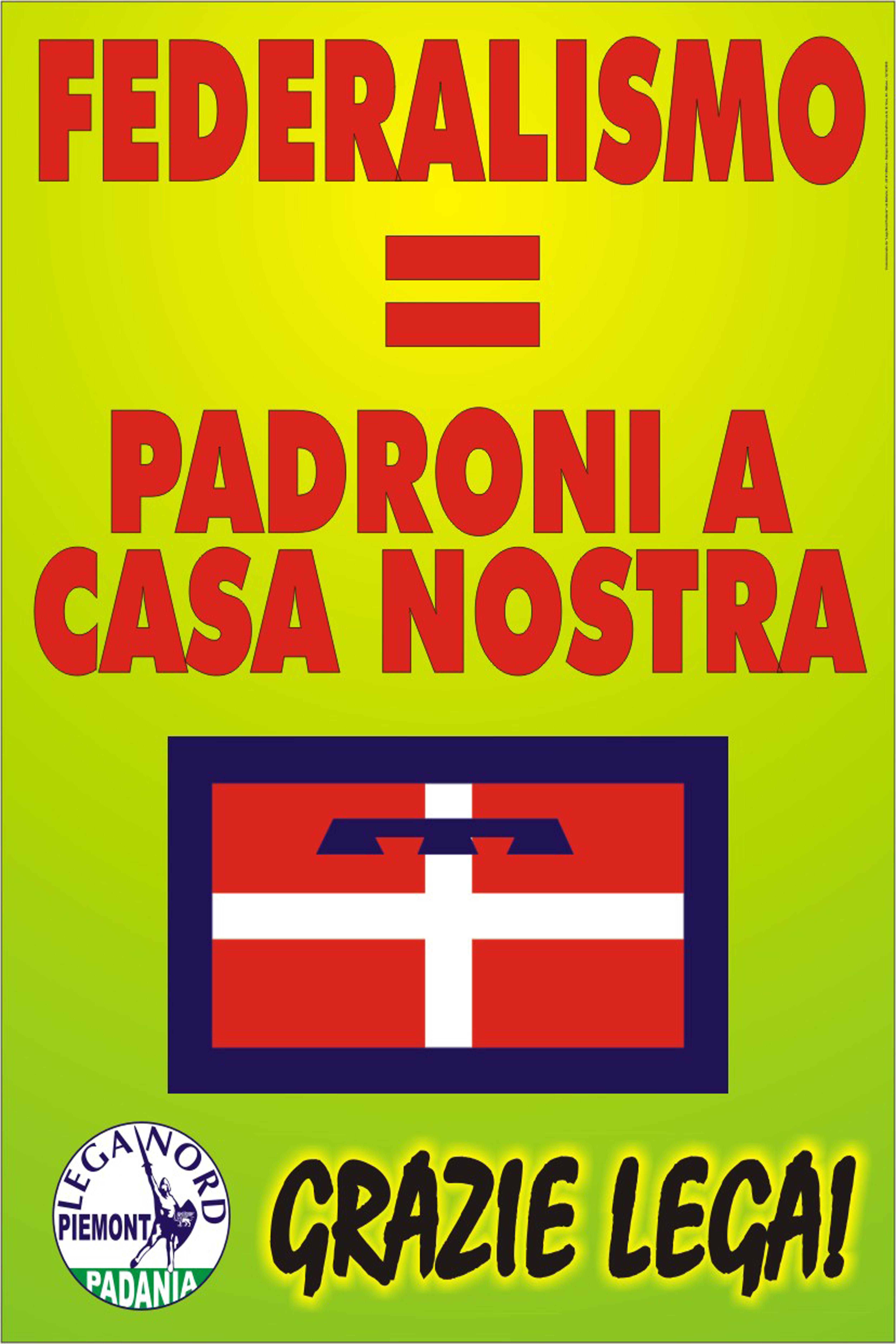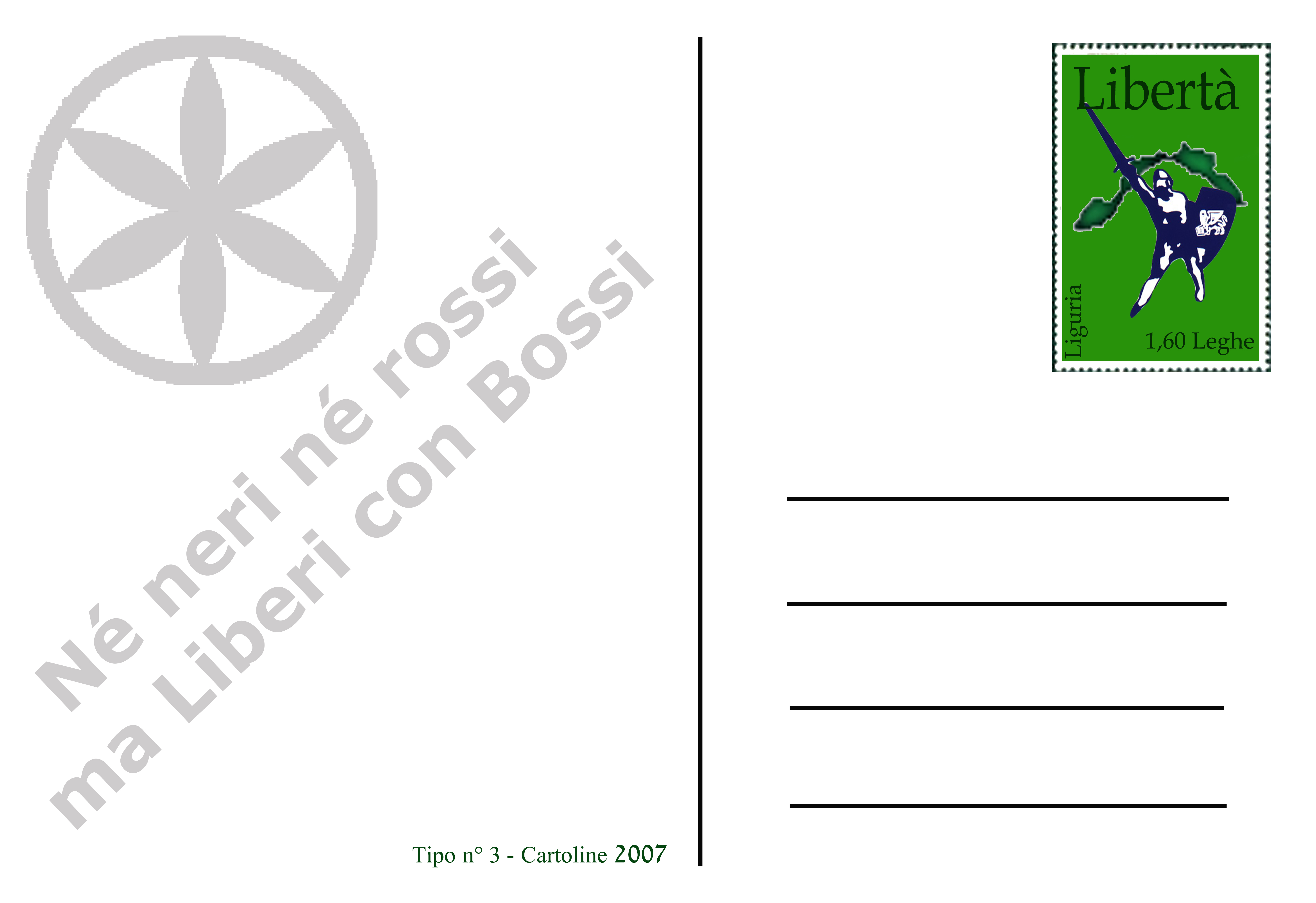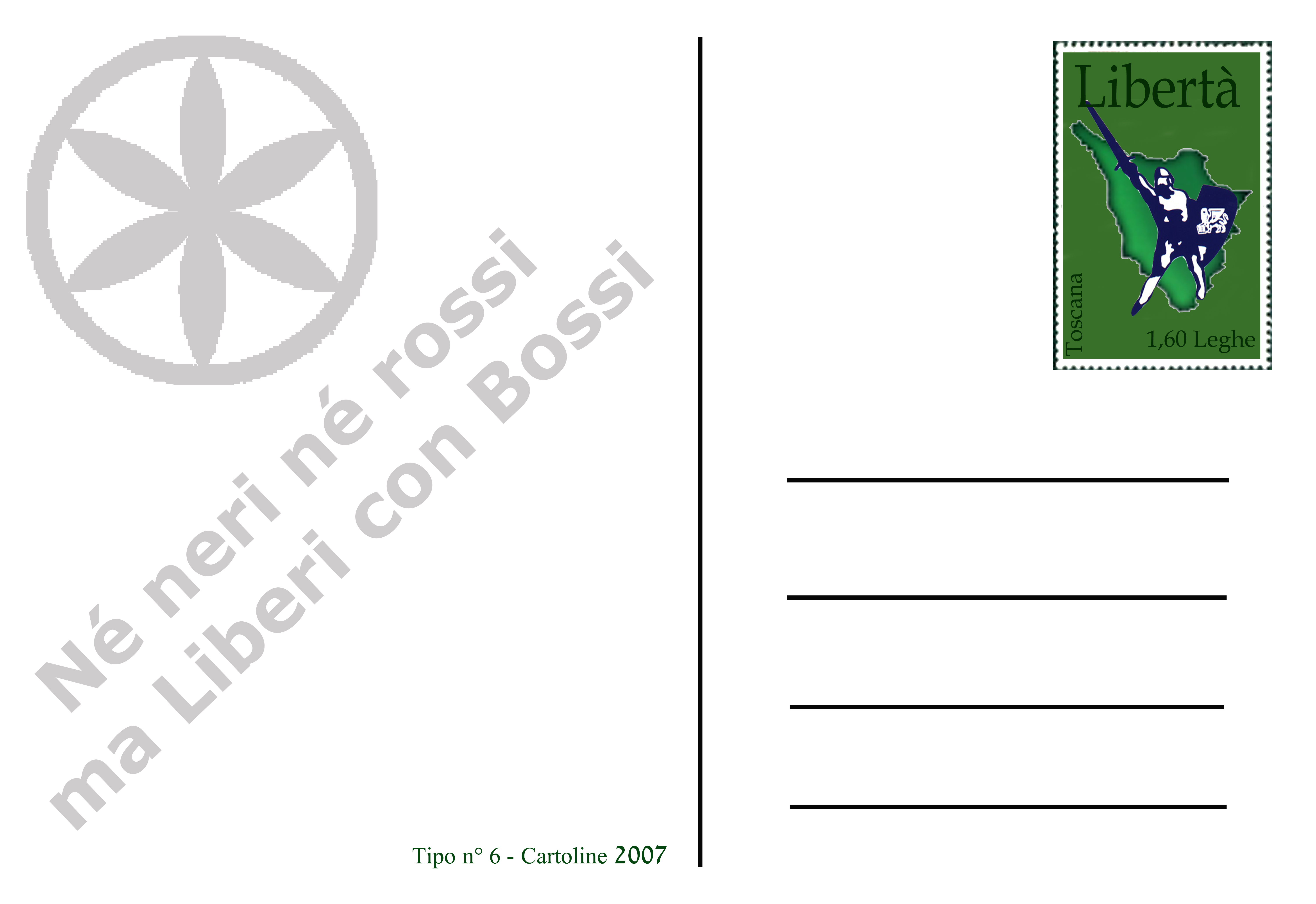 Retro: Bollo della Nazione + scritta “nè neri nè rossi  /  ma liberi con Bossi”