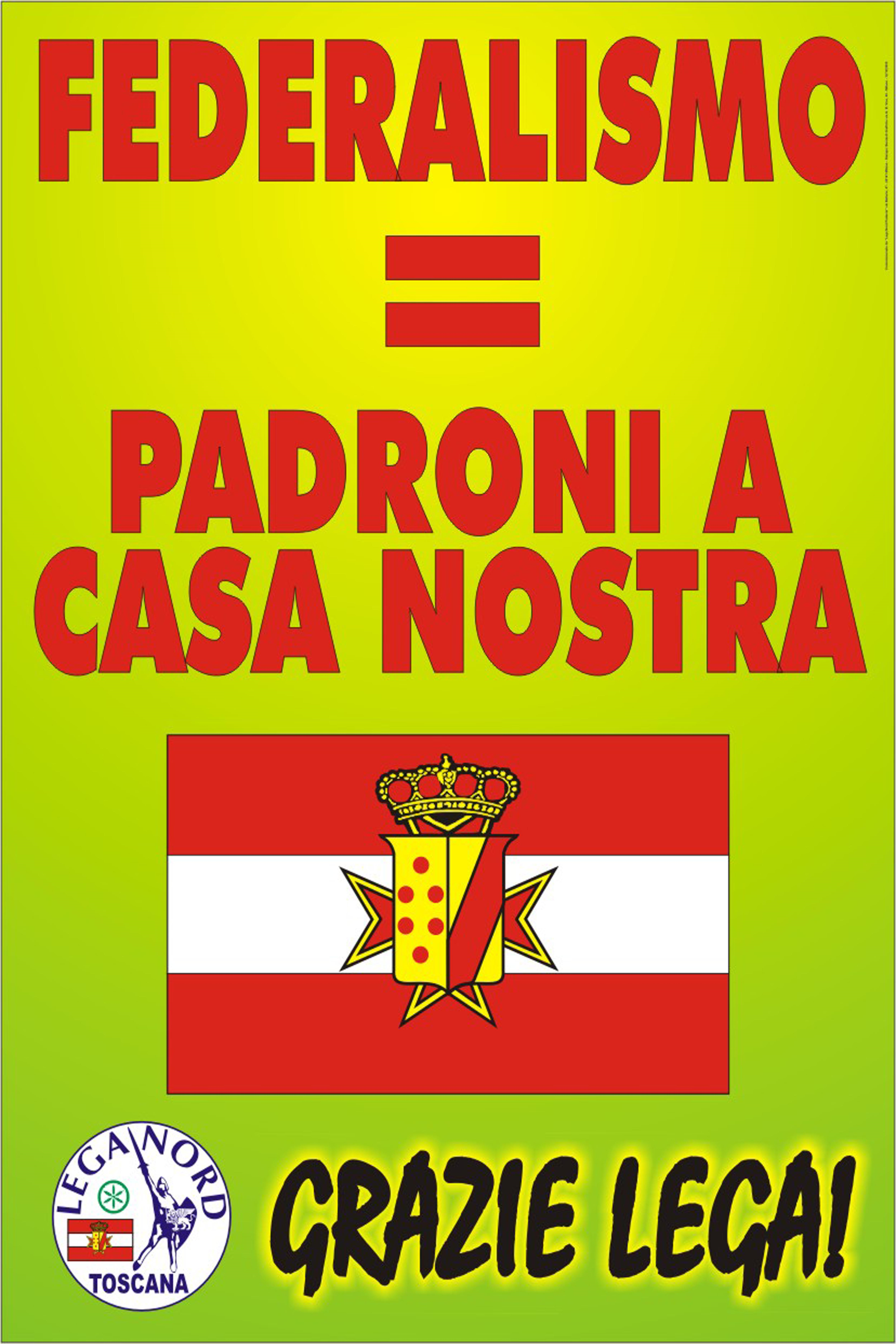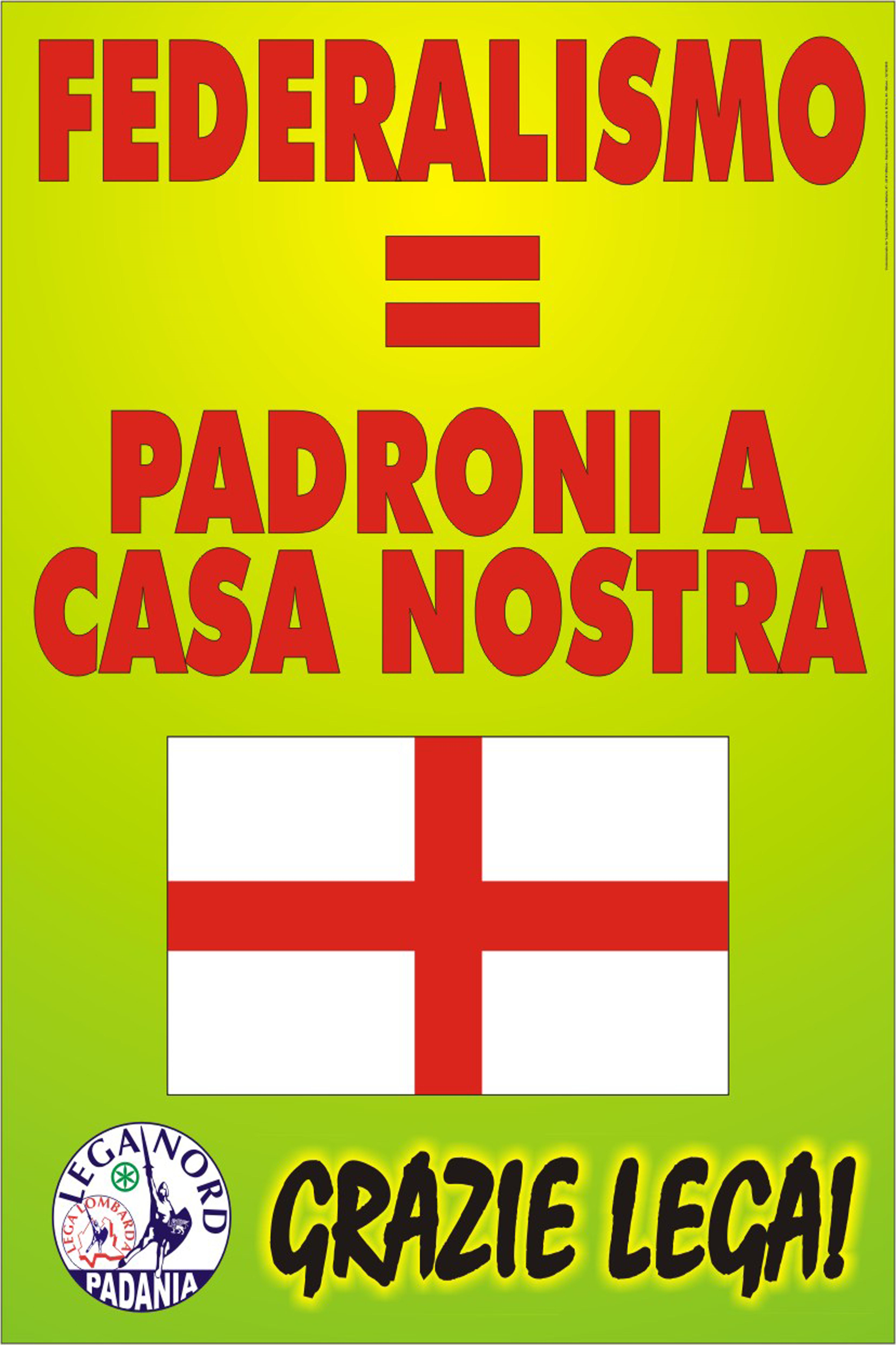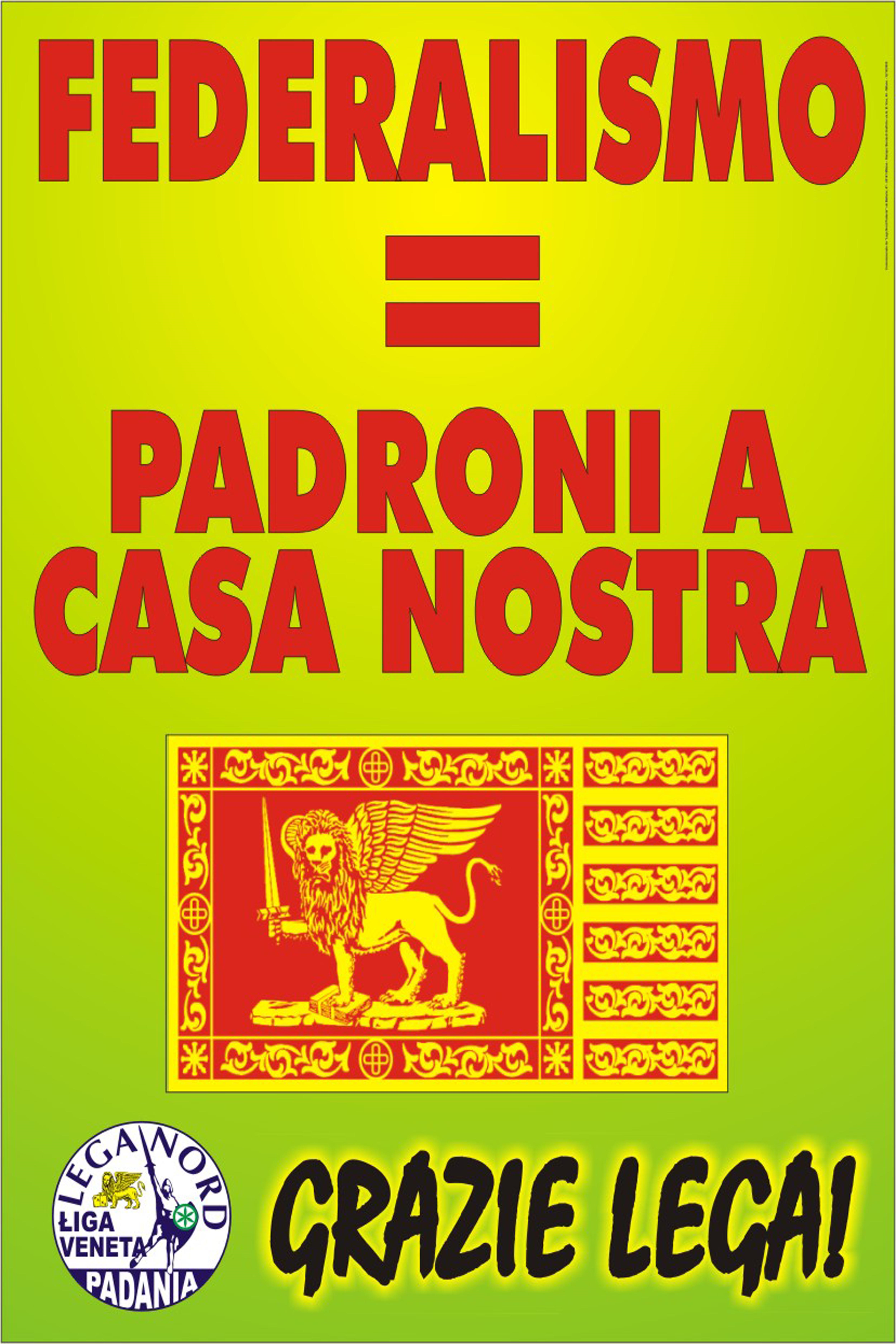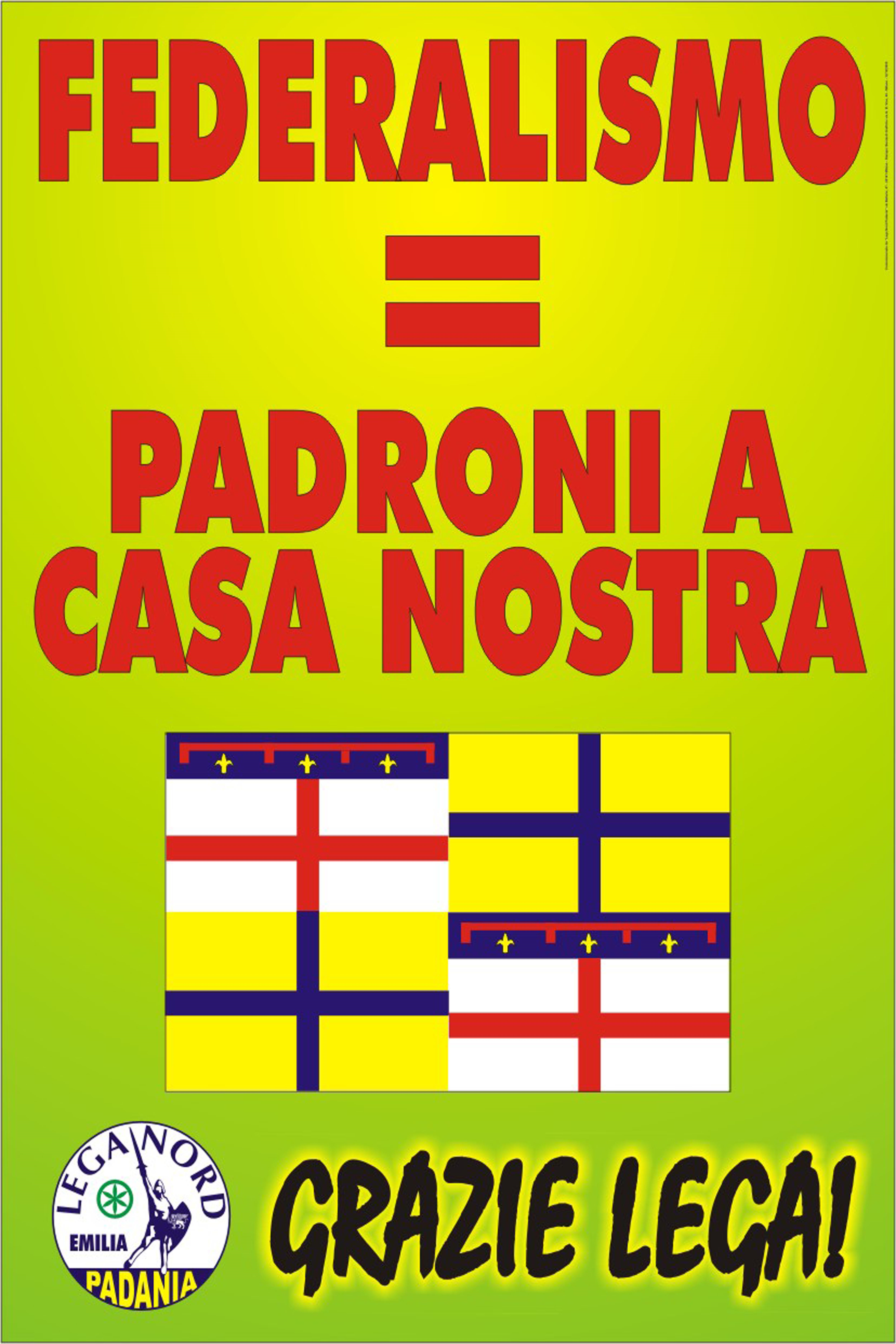 Retro: Bollo della Nazione + scritta “nè neri nè rossi  /  ma liberi con Bossi”