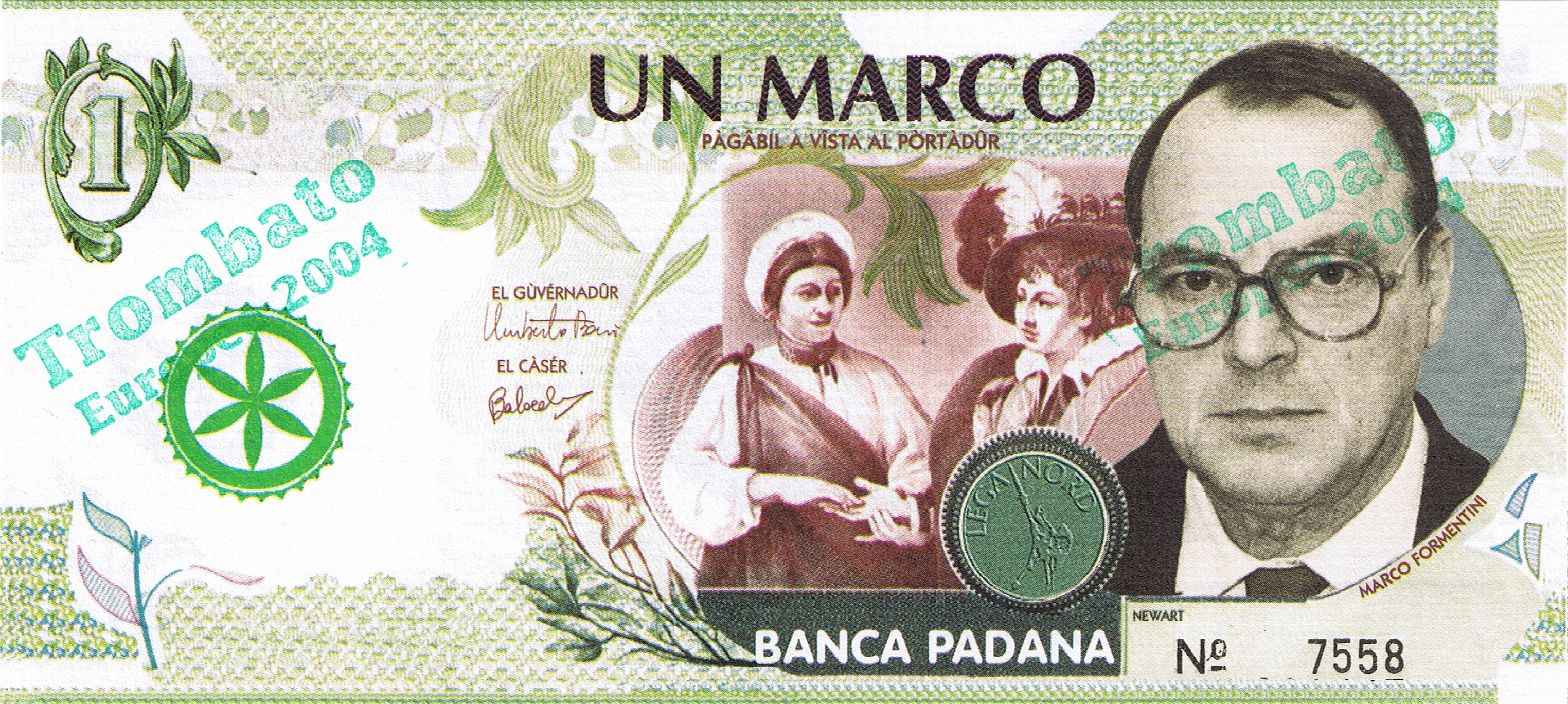 Il modello base di questa banconota (cod. C-2004-B1) ha la scritta “trombato” di colore blu, parzialmente sovrapposta al Sole delle Alpi.